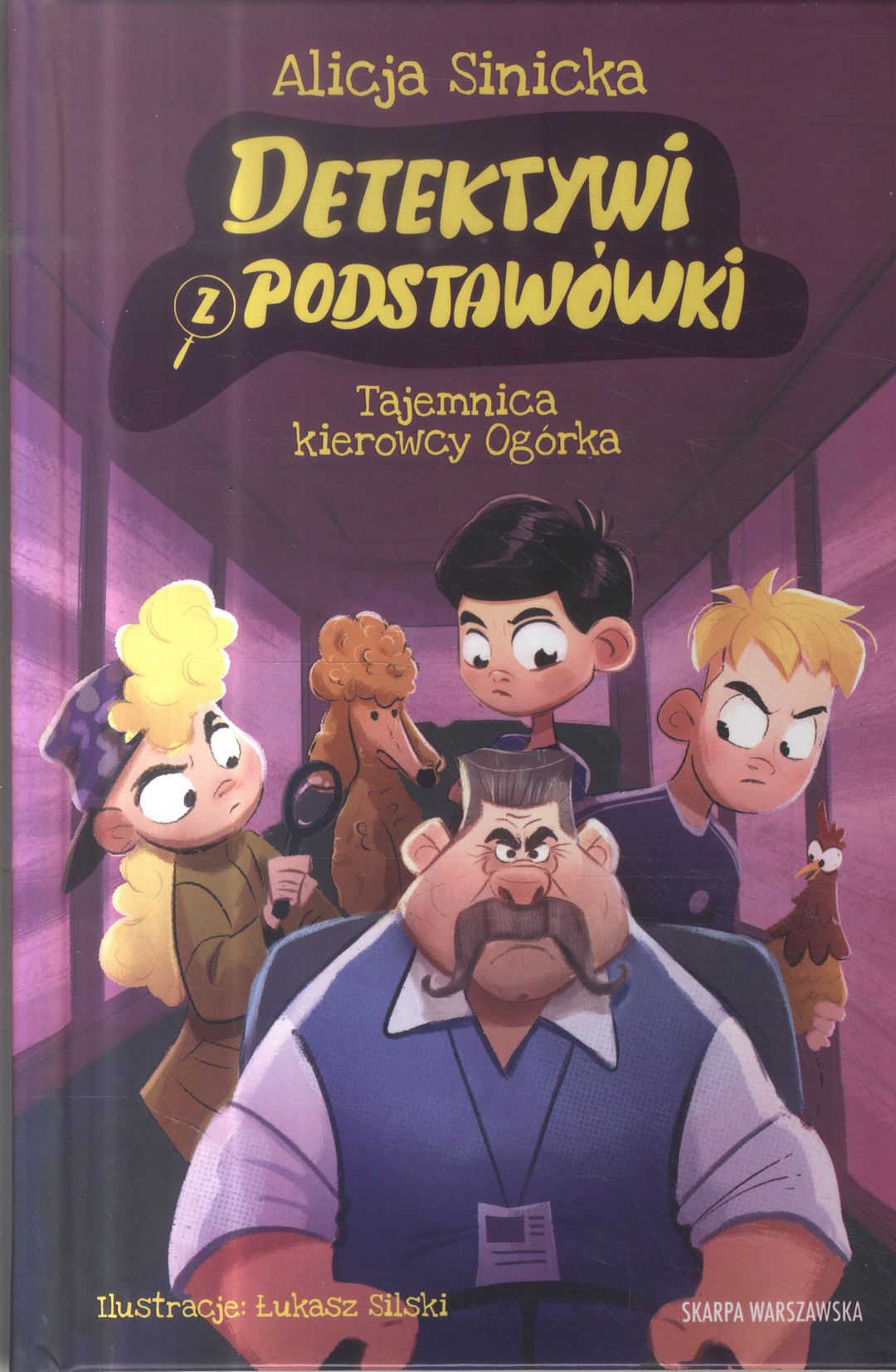 Tajemnica kierowcy ogórka. T. 4. / Alicja Sinicka ; ilustracje: Łukasz Silski. - Wydanie pierwsze. - Warszawa : Agencja Wydawniczo-Reklamowa Skarpa Warszawska, copyright 2024. - 156, [4] strony : ilustracje kolorowe ; 22 cm.